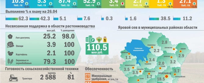 Теплая, солнечная погода, установившаяся в последние дни в Ярославской области, способствует старту нынешней посевной кампании: согласно данным на 26 апреля, уже в 11 из 17 муниципальных районов начался сев. Так в ООО «Племзавод «Родина» [...]